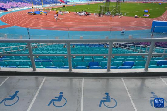 这是广东奥体中心体育场看台区的轮椅座位(12月7日摄)。